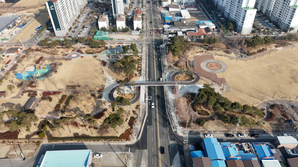 시는 지난 2022년 실시설계용역 착수한 후 설계 단계부터 ‘무장애 육교’공법을 채택해 노약자, 장애인, 유모차 이용객 등 교통 약자들이 계단 없이도 편리하게 이용할 수 있도록 조성했다.