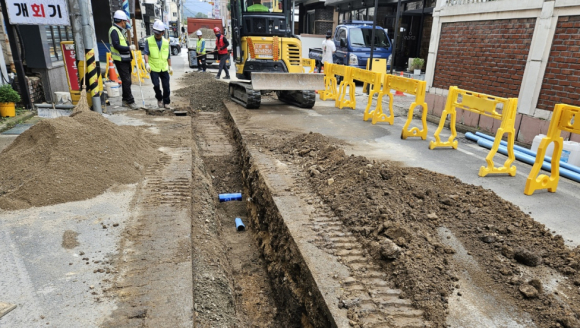 | ↑↑ 경주시 도심 일원에서 노후 상수도 관로 정비공사가 진행되고 있는 모습<경주시 제공> |
