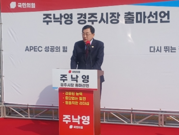 주낙영 경주시장(국힘)이 17일 오전 10시 시청 앞에서 2026년 6·3 지방선거 경주시장 선거 출마를 공식 선언했다.
