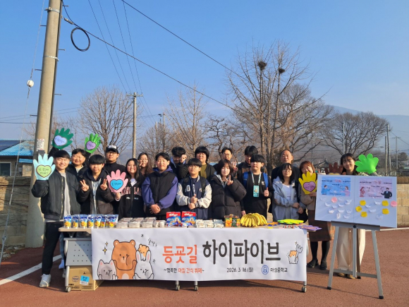 학생의 학교생활 만족도와 소속감을 높여 학교폭력 예방에 앞장서고 있는 문경 마성중이 지난 16일 ‘어울림 교육의 날’을 맞이해 ‘등굣길 하이파이브 데이 행사’를 개최했다.