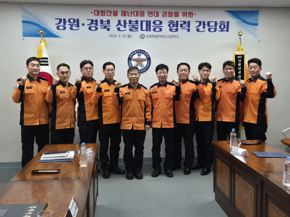 | 경북 소방본부가 지난 16일 오후 강원소방학교에서 강원 소방본부와 함께 대형 산불에 대한 효율적 공동 대응과 협력 강화를 위한‘경북·강원 소방본부 간 산불대응 협력 간담회’를 개최했다.