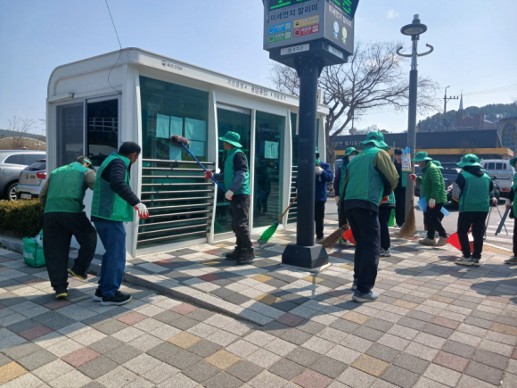 성주 용암 행정복지센터 앞에서 지난 17일, 용암 새마을회원이 버스 승강장 청소를 실시했다.