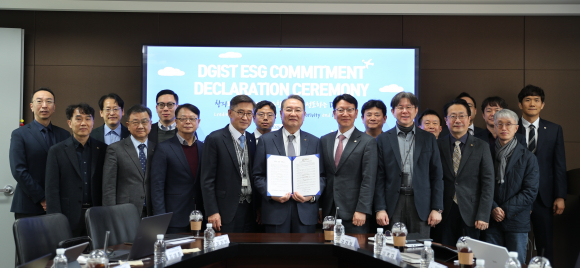 DGIST가 지난 17일 대학본부 대회의실에서 'DGIST ESG 경영선포식'을 개최하고, 지속가능 경영체계 확립을 공식 선언했다.