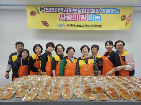 의성 구천 지역사회보장협의체가 지난 18일 회원 10여 명이 참여한 가운데 대한적십자사 및 구천면 찾아가는 보건복지팀과 함께 사랑의 빵 나눔 활동을 펼쳤다.