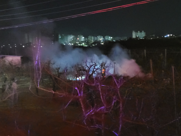 | ↑↑ 농산물 소각 모습.<경북소방 제공> |