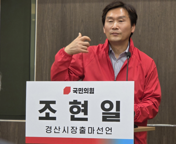 조현일 국힘 경산시장이 25일 오후 시청 회의실에서 기자회견을 열고 ‘함께 누릴 스마트 경산’이라는 슬로건을 발표하며 재선 출마를 공식 선언하고 선거에 돌입했다.