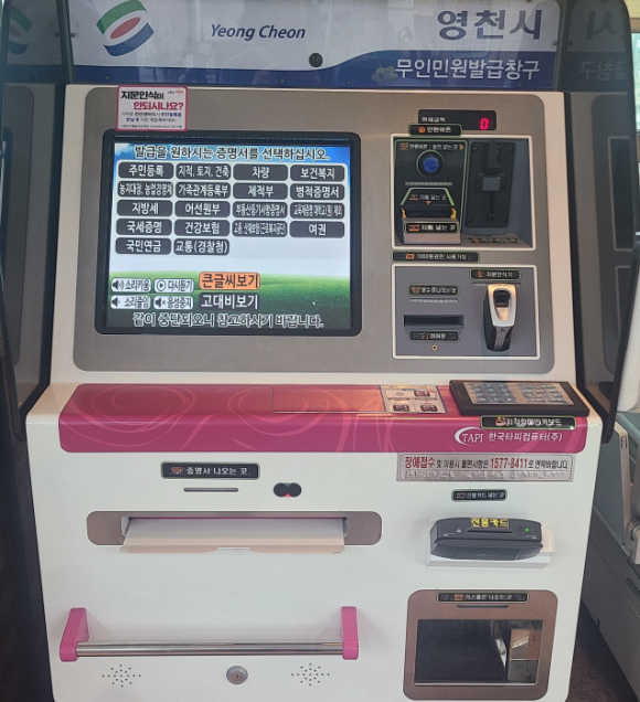 | ↑↑ 장애인 편의기능 개선이 적용된 영천시 관내 무인민원발급기<영천시 제공> |