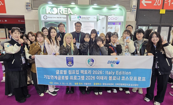 대구한의대가 최근 교육부 글로컬대학 30 사업 일환으로 이탈리아 볼로냐에서 개최된 세계적 뷰티 산업 전시회 '2026 코스모프로프 볼로냐'에 참가해 글로벌 산업 현장 기반 교육과 산학연 협력 모델의 해외 확장을 추진했다.