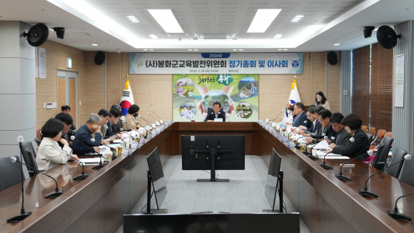 | 봉화교육발전위 2026년 정기총회 및 이사회 개최모습.<봉화군 제공> | (사)봉화교육발전위원회가 지난 26일 군청 중회의실에서 박현국 이사장(군수)을 비롯한 이사 및 대의원이 참석한 가운데 2026년 정기총회 및 이사회를 개최했다. 정기총회 및 이사회에는 2025년도 사업결산과 2026년도 사업계획 및 예산(안), 기타 안건 등 올해 사업의 중점사항에 대해 심의·의결했다. (사)봉화교육발전위원회는 올해 장학사업으로 진학부문, 성적우수부문 등 5개 부문의 장학금을 지급할 계획이며, 해외견학 장학사업으로 군 국제자매결연도시 청소년 문화탐방과 우수 학생 해외견학을 추진할 예정이다. 특히, 해외견학 장학사업은 개인의 글로벌 역량과 진로 경쟁력을 높이는 주요 사업으로 만족도가 아주 높은 사업으로 주목되고 있다. 박현국 이사장은 “봉화군 미래를 이끌어 갈 지역 인재 양성을 위해 지속적으로 지원하고, 학생이 보다 나은 환경에서 학습할 수 있도록 다양한 장학사업을 추진해 나가겠다”고 말했다. |