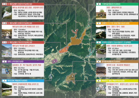 이번에 신청한 K-베트남 밸리 지역특화발전특구는 봉화 봉성면 창평리 일원 877,372㎡(K-베트남 밸리 162,875㎡)를 대상으로 하며, 사업비는 3,476억 원(기투자 1,127억원)이다. 봉화군은 신규로 추진하는 K-베트남 밸리 조성사업을 중심으로 기존 조성사업과 연계사업을 포함한 8개 사업을 하나의 특구로 묶어 사업 간 연계성과 추진기반를 강화하는 데 중점을 두고 있다.