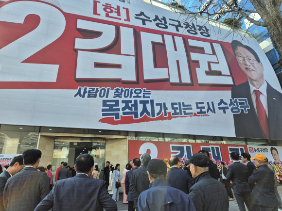 김대권 국힘 대구 수성구청장 예비후보가 지난 28일 오후 수성구 동대구로 7(두산동) 건물 1층 선거사무소에서 개소식을 갖고 본격 3선 도전에 나섰다.