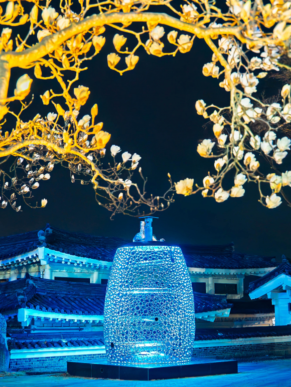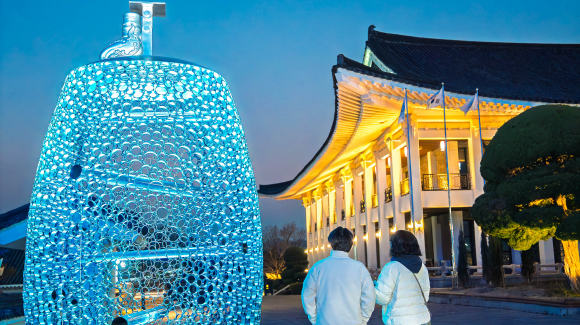 한원석 작가의 ‘환영’은 2,025개의 폐파이프를 정교하게 엮어 성덕대왕신종의 실루엣을 형상화한 높이 4.5m 규모의 대형 설치 작품이다. 지난해 10월, 2025 APEC(아시아태평양경제협력체) 정상회의를 앞두고 경북문화관광공사가 설치했다. 버려진 산업 폐기물이 예술로 재탄생했다는 점에서 BTS가 추구해 온 ‘순환과 회복’의 가치와 맥을 같이 한다. 특히 조명이 점등되면 수천 개의 파이프 틈새로 새어 나오는 빛의 입자들이 거대한 종의 형상을 만들어내며, 마치 BTS의 노래 속 맥놀이 울림이 눈앞에서 시각적으로 일렁이는 듯한 환상적인 광경을 연출한다. 오전 7시30분부터 밤 9시30분까지 볼 수 있다. 이번 봄, 경주를 찾는 관광객들은 소리와 빛으로 연결된 특별한 ‘성덕대왕신종 투어’를 즐길 수 있다. △국립경주박물관에서 성덕대왕신종 진품의 장엄한 자태를 마주한 뒤, △BTS의 ‘No. 29’를 들으며 보문관광단지로 이동해 △한원석 작가의 ‘환영’이 선사하는 빛의 향연과 소리를 감상하는 코스다. 경북문화관광공사 김남일 사장은 “BTS의 글로벌 영향력과 한원석 작가의 수준 높은 예술적 통찰이 만나 경주가 현대적 감각의 ‘야간 예술 도시’로 거듭나고 있다”며, “국내외 관광객들에게 신라의 정신과 현대적 기술이 결합 된 경주만의 독보적인 문화 콘텐츠를 지속적으로 선보일 것”이라고 밝혔다. 한원석 작가는 영국 첼시 예술대와 일본 도쿄대에서 수학한 건축가 출신의 중견 설치미술가다. 세계적인 건축 거장 안도 다다오의 제자로 잘 알려진 그는 건축적 정교함에 사회적 메시지를 담아내는 독창적 작업으로 2018 평창 동계올림픽 홍보관 설계 등 국내외 대형 프로젝트를 성공적으로 이끌며 미술계의 높은 평가를 받고 있다. |