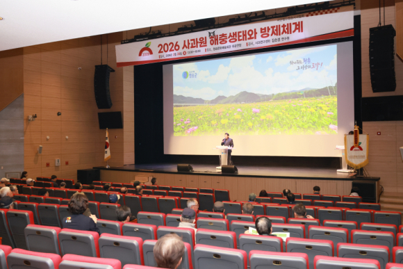 교육은 지역 내 사과 재배 농가를 대상으로 진행됐으며, 국립원예특작과학원 사과연구센터 김순경 연구원이 강사로 나서 사과원 해충의 생태와 방제 체계 등을 주제로 강의를 진행했다.