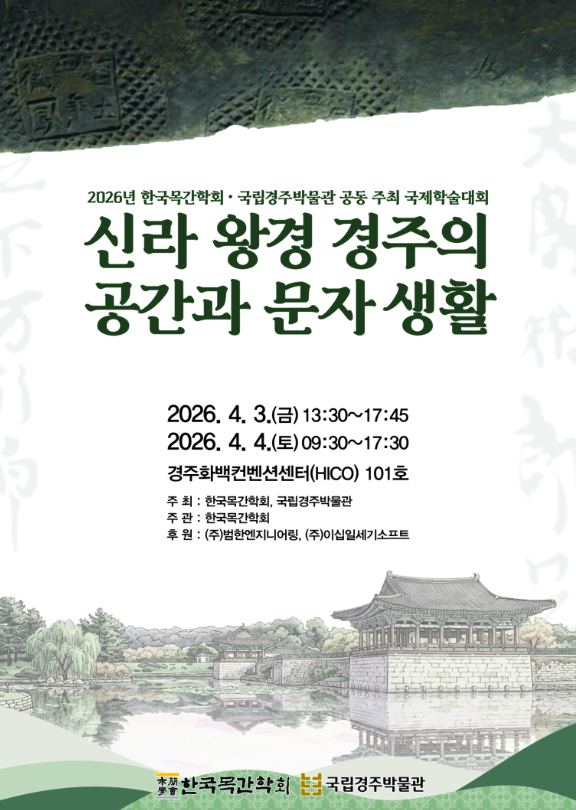 한국목간학회와 국립경주박물관이 오는 4월 3일~4일까지 경주화백컨벤션센터에서 국제학술대회 “신라 왕경 경주의 공간과 문자 생활”을 공동 개최한다.