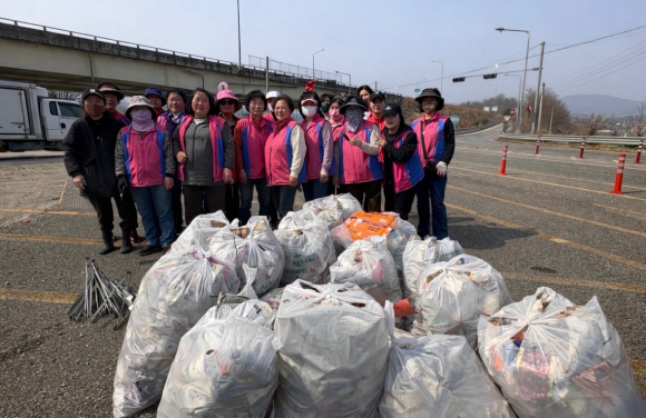생활개선회원은 덕촌교차로 인근 도로변과 녹지대에 무단 투기 된 생활 쓰레기, 폐기물, 그리고 겨울철 방치된 부유물 등을 집중 수거했다.
