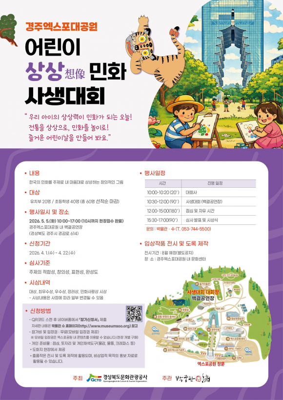 | ↑↑ 경주엑스포대공원, '어린이 상상 민화 사생대회' 홍보 포스터<경북문화관광공사 제공> |