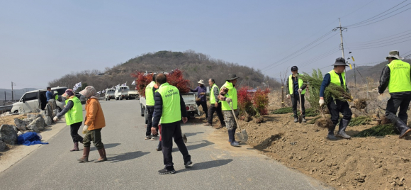 김천 감문 새마을남녀협의회가 21일 새마을 회원 40여 명이 참석한 가운데 봄꽃 심기 행