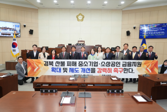 안동 시의회(의장 김경도)가 1일 개최된 제265회 임시회 제2차 본회의에서 ‘경북 산불 피해 중소기업·소상공인 금융지원 확대 및 제도 개선 촉구 건의안’을 의원 전원 공동발의로 채택했다.