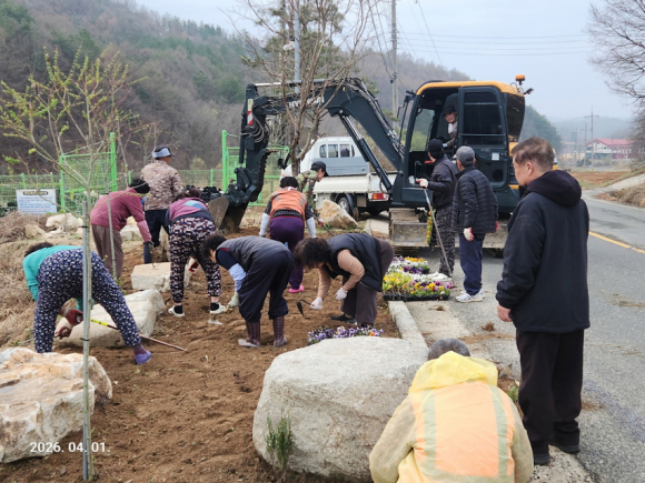 안동 서후 태장2리 주민이 지난 1일, 자발적으로 꽃묘 식재 활동을 펼쳤다.