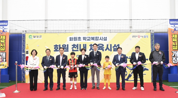 달성군이 지난 2일 화원초 학교복합시설에서 '화원 천내 체육시설' 개장식을 갖고, 이달 시범 운영을 거쳐 내달부터 정식 가동에 나선다.
