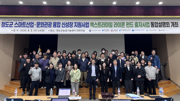 청도군이 지난 1일 농업기술센터에서 지역 중소기업, 소상공인, 청년 창업가 등 100여 명이 참석한 가운데 ‘청도군 스마트산업·문화관광 융합 신성장 지원사업’과 ‘엑스트라마일 라이콘펀드’ 통합 사업설명회를 개최했다.
