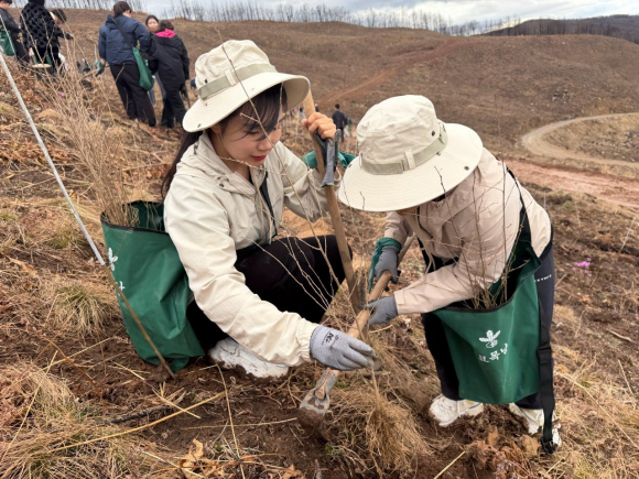 SK텔레콤이 유한킴벌리와 함께 지난 4일 안동 풍천면 일대에서 '산불 피해지역 평화의숲 조성'을 위한 나무심기를 진행했다. 행사에는 SKT와 유한킴벌리 임직원·가족 100여 명이 자발적으로 참여했다. 참가자들은 꿀벌 먹이원인 헛개나무, 미선나무, 노랑무늬붓꽃 등 산림청 지정 희귀 수종을 포함해 1,500그루 나무를 식재하며 산림 생태계 복원에 힘을 보탰다. |