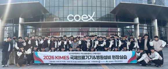 대구한의대(총장 변창훈) 재활치료학부가 지난 3월 19~20일 서울 코엑스에서 열린 국내 최대 의료기기 전시회 'KIMES 2026(국제의료기기·병원설비전시회)'에 참가해 실무형 인재 양성을 위한 현장견학을 진행했다.
