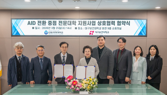 대구보건대가 최근 본관 9층 소회의실에서 안동과학대와 'AID 전환 중점 전문대학 지원사업' 추진을 위한 상호협력 협약을 체결했다.