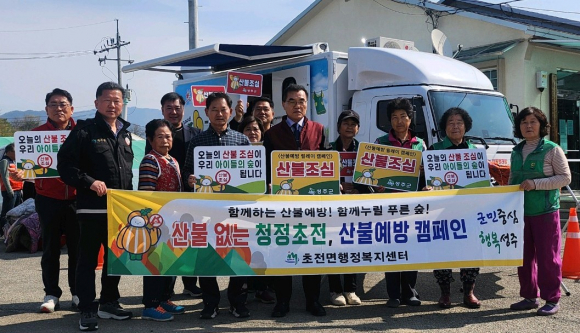 성주 초전면이 지난 3일 대장2리 마을회관 및 마을일원에서 새마을부녀회원, 마을이장과 주민, 관계 공무원 등 20여 명이 참석한 가운데 산불예방 캠페인을 실시했다.