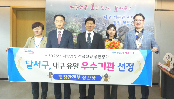 대구 달서구가 행정안전부 주관 ‘2025년 지방정부 적극행정 종합평가’에서 대구 자치구 중 유일하게 우수기관으로 선정돼 장관 표창까지 수상하는 성과를 거뒀다.