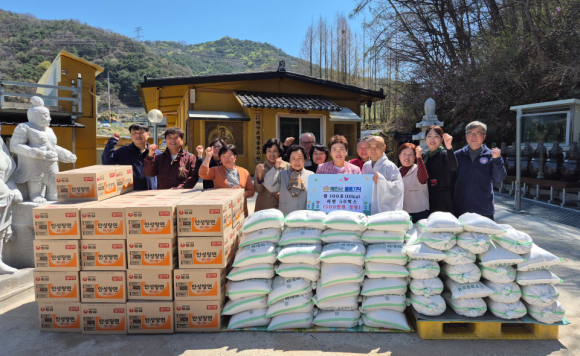 성주 가천 소재 해민사가 8일, 쌀(10kg) 100포와 라면 50박스(500만원 상당)를 성주 가천 행정복지센터에 기탁했다.