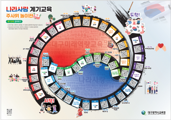| ↑↑ 대구시교육청이 주사위 굴리고 QR 찍으며 배우는 ‘나라사랑 계기교육’ 자료를 개발·보급한다. 대구시교육청 제공 |