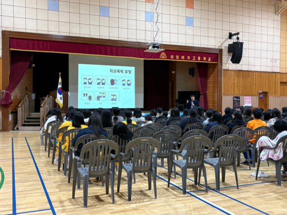 학교폭력 예방교육 ‘쌤·쌤교실’은 의성경찰서 학교전담경찰관(SPO)과 함께 운영된다. 청소년상담복지센터는 학교폭력 유형과 위기 상황에서 활용 가능한 지원 체계를 안내하고, 학교전담경찰관은 사례를 바탕으로 학교폭력 발생 시 법적 책임과 대응 절차를 설명해 학생의 경각심을 높이고 있다.