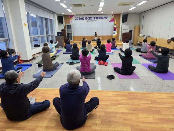 김천 증산 행정복지센터가 지난 7부터 수강생 32명이 참석한 가운데 면 평생학습센터 요가 교실을 운영하고 있다.