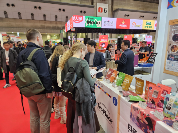 | ↑↑ 경산시·경북IT융합산업기술원이 일본 국제 식품 박람회에서 운영된 경산 공동관에 많은 바이어들이 방문하고 있다. 경산시 제공 |