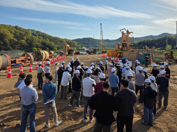 시는 견학을 통해 단순한 공법 설명에 그치지 않고, 실제 현장에서 품질을 확보하는 과정을 직접 확인하는 체험으로 참석자들은 도로 성토 부 다짐 상태를 확인하는 현장밀도 시험과 콘크리트 시공성을 점검하는 압축 및 슬럼프 시험, 공기량 측정 과정을 차례로 살폈다.