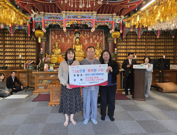 구미 금오산 법성사 법운사회복지회가 지난 17일 원평동 취약계층을 위해 생계 긴급지원금 200만 원을 기탁했다.