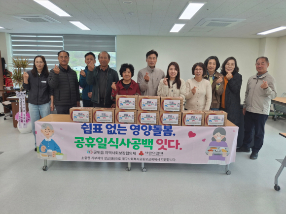 군위읍 지역사회보장협의체가 대구사회복지공동모금회 읍면동 협약모금사업 일환으로, 공휴일 동안 식사 공백이 발생하는 주간보호센터 이용 어르신을 위해 ‘쉼표 없는 영양돌봄’사업을 추진한다.