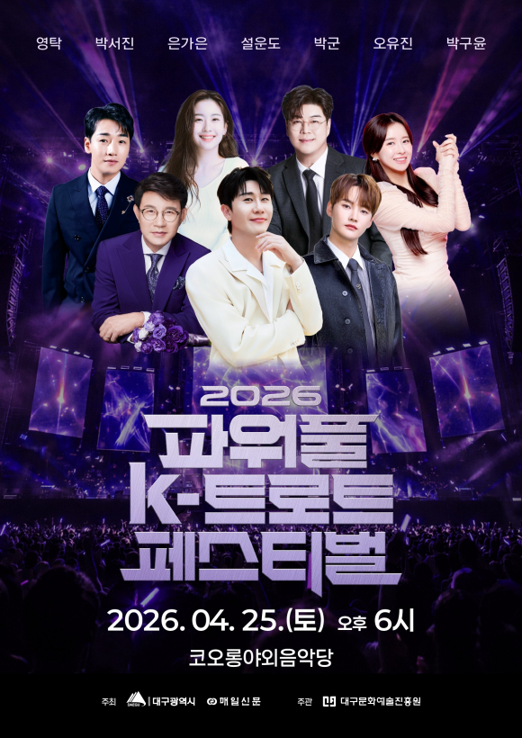 대구시가 오는 25일 오후 6시, 코오롱 야외음악당에서 '2026 파워풀 K-트로트 페스티벌'을 개최한다.