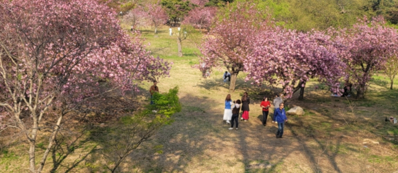 환하게 피어난 왕벚꽃길은 풍성하고 탐스러운 자태로 방문객 탄성을 자아내고 있으며, 겹겹이 쌓인 꽃잎의 중후함과 크기가 돋보이는 겹벚꽃(왕벚꽃)은 4월 중순경 절정에 달해 소풍을 즐기거나 산책하는 이들로 붐비는 풍경을 연출한다.