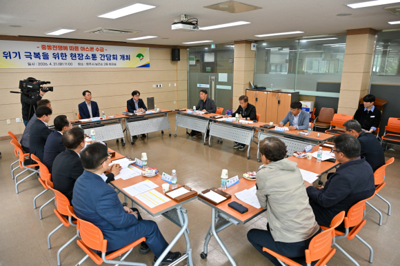 | 영주시가 최근 중동전쟁 장기화에 따른 원자재 시장 불안으로 아스콘 수급 차질이 우려됨에 따라, 이에 선제적으로 대응하고 지역 건설현장의 혼선을 최소화하기 위해 21일 현장 소통간담회를 개최했다.