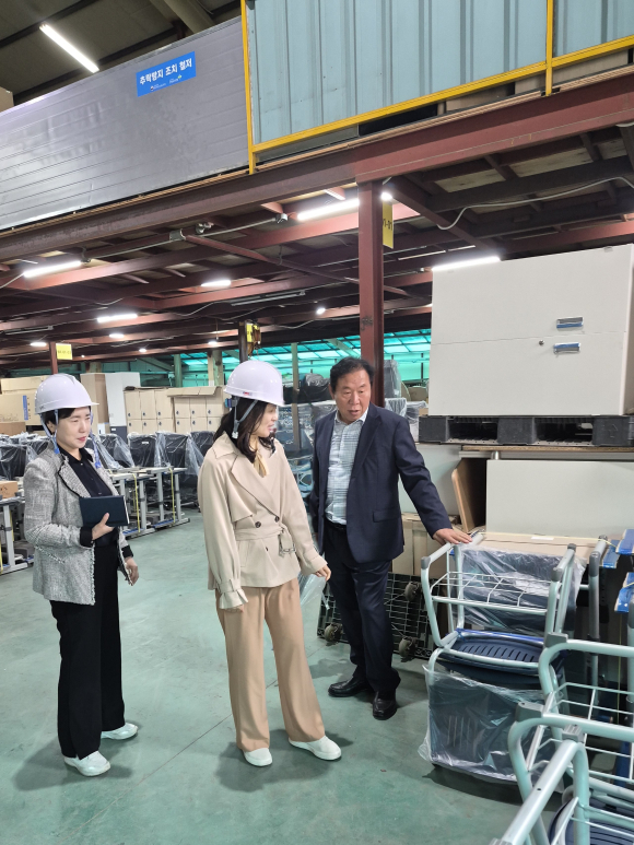 이날 윤경자 청장은 ㈜포머스의 주요 생산 라인을 직접 둘러보며 사무용 책상, 의자 등의 제조 공정을 확인하고, 원가 상승에 따른 경영상의 고충과 공공구매 촉진을 위한 제도적 건의 사항을 심도 있게 논의했다.