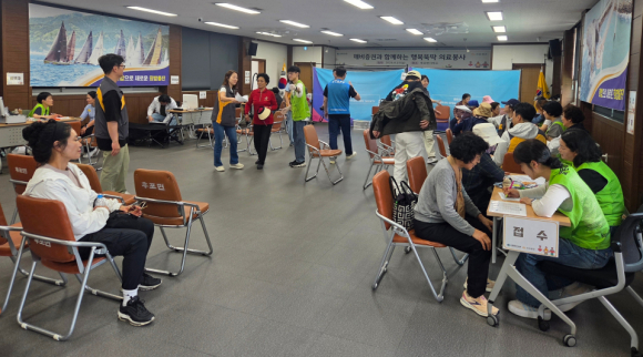 후포면사무소 2층 회의실에서 지난 19일, KB증권과 (사)열린의사회가 주관한 ‘행복뚝딱 의료봉사’가 실시됐다.