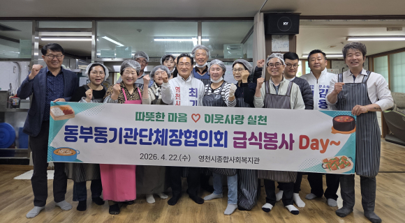 영천 동부동 기관단체장협의회가 22일 종합사회복지관을 방문해 어려운 이웃을 위한 점심 무료급식 봉사에 참여했다.