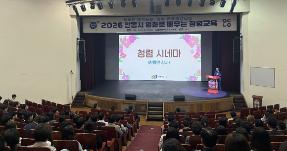 | 안동시가 지난 21일 시민회관 낙동홀에서 시 소속 공무원 및 공직 유관단체 직원 380여 명이 참석한 가운데 ‘2026년 영화로 배우는 청렴교육’을 실시했다.