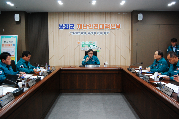 자연재난 대책 점검회의 개최 모습.<봉화군 제공>