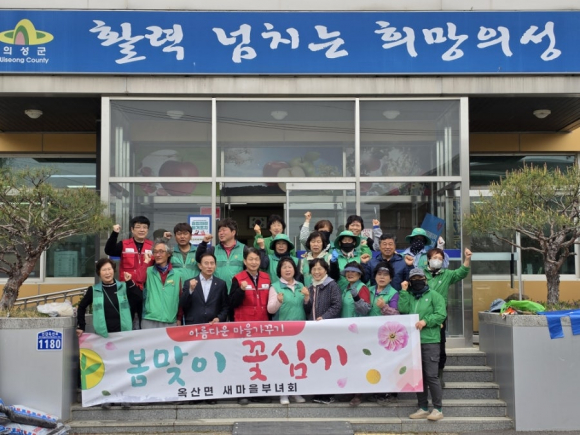 의성 옥산 부녀회가 지난 22일, 회원 17명이 참여한 가운데 면사무소 주변과 관내 주요 도로변 일대에서 봄맞이 꽃심기 행사를 실시했다.