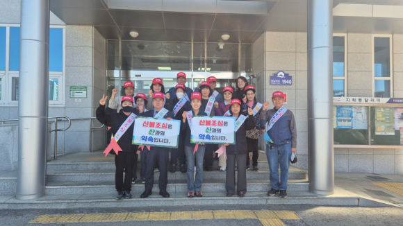 김천 지좌동 행정복지센터가 지난 24일 동 통장협의회와 함께 산불 예방을 위한 캠페인 및