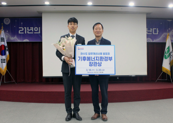 | 안동 시설관리공단이 한국상하수도협회가 주최하고 기후에너지환경부가 후원한 2026 WATER KOREA 하수도 업무 개선 발표회에서 최고 영예인 기후에너지환경부 장관상을 수상했다.