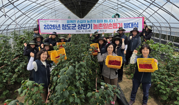 손형미 청도 농업기술센터 소장이 지난 23일 운문면 방지리 산딸기 농장에서 ‘2026년 상반기 농촌일손돕기 발대식’을 열고, 적기 영농 지원에 나섰다. 군은 농촌인구 감소와 고령화로 일손 부족을 겪고 있는 농가를 지원하기 위해 매년 일손돕기에 나서고 있다. 발대식은 농가에서 일손이 집중적으로 필요한 시기에 적기 영농 지원활동을 펼치고, 현장 중심의 소통을 강화하기 위해 마련됐다.